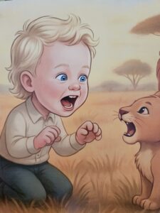 Heel eerlijk was ik eerst een beetje sceptisch over het concept, in de zin van ‘lekker makkelijk AI generated foto’s in een boek plakken aan de hand van een echte foto van de klant, en klaar is kees’. Maar ik kreeg Broly zijn boek binnen en ik kon mijn ogen niet geloven (mijn man / onze Boekenfreaks-it’er heeft zelfs nog stiekem een foto gemaakt dat ik in tranen ben bij het zien van sommige illustraties van Broly)