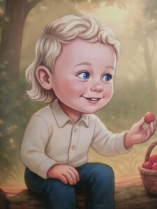 Heel eerlijk was ik eerst een beetje sceptisch over het concept, in de zin van ‘lekker makkelijk AI generated foto’s in een boek plakken aan de hand van een echte foto van de klant, en klaar is kees’. Maar ik kreeg Broly zijn boek binnen en ik kon mijn ogen niet geloven (mijn man / onze Boekenfreaks-it’er heeft zelfs nog stiekem een foto gemaakt dat ik in tranen ben bij het zien van sommige illustraties van Broly)